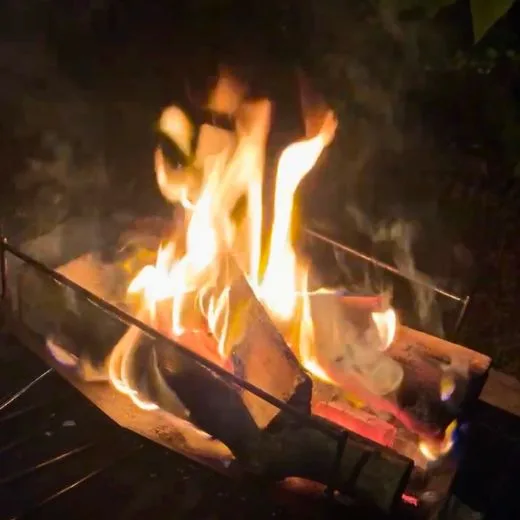 焚火はOKですが直火禁止です。芝サイトなので必ず焚火台と焚火シートを使いましょう!