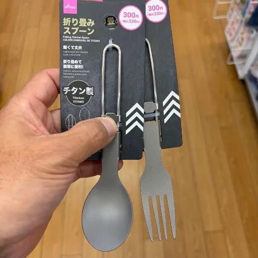 割り箸が一番手軽で後片付けも楽。スーパーでもらう割り箸でも全然OKです!最近はチタンのカトラリーもDAISOでは販売しています。これで十分です!