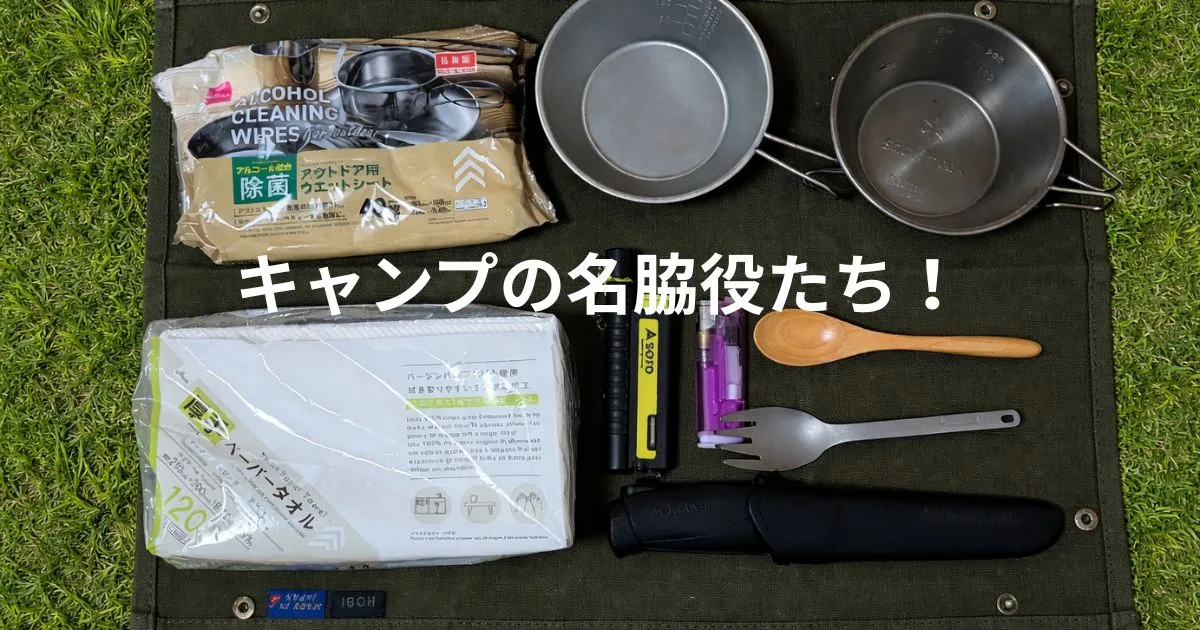 これらの小物は100均(セリアやダイソー)で一通り揃うので、まずはキャンプをしてみて、その中で「もう少し使い勝手を良くしたいな」と感じる部分から、少しこだわった道具に買い替えていくと良いと思います。
