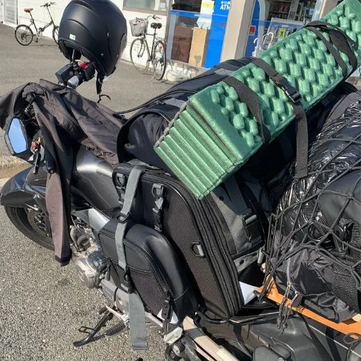 設営・撤収の早さはバイクキャンプにおいて正義。どんな凸凹地面でもこれ一枚で快適さが手に入る、初心者の強い味方です。
