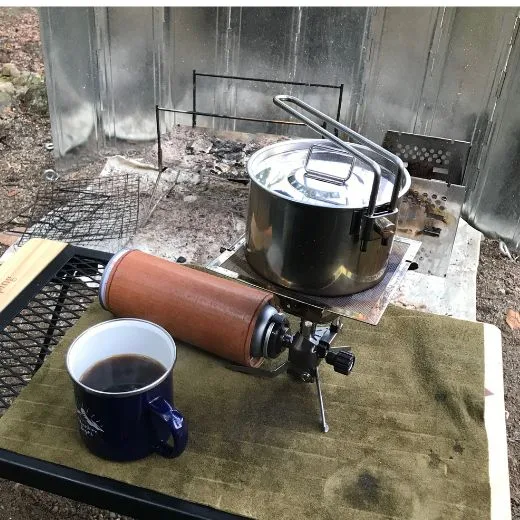 私のキャンプの原点。当初はデイキャンプで外ラーメンを食べるために購入しましたが、現在はデュオキャンプでのケトルとして活躍中。