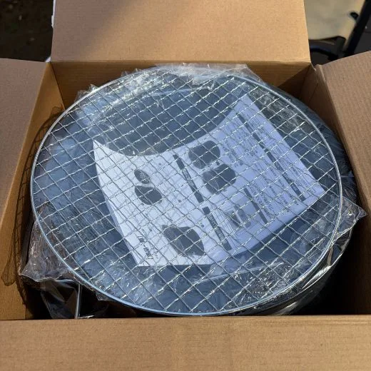 丁寧な梱包がなされています。色もブラックで見た目もカッコいいです。パーツは本体、ロストル、五徳、焼き網の4つ。シンプルな構造です。