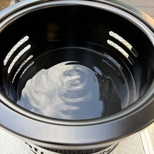 調理中に移動をする際は本体に入れた水がこぼれないように注意しましょう。調理で出た油や燃えカス、細かい炭が落ちたものが水に溜まっています。これらが隙間から本体下の金網部分に落ちると掃除が大変です。
