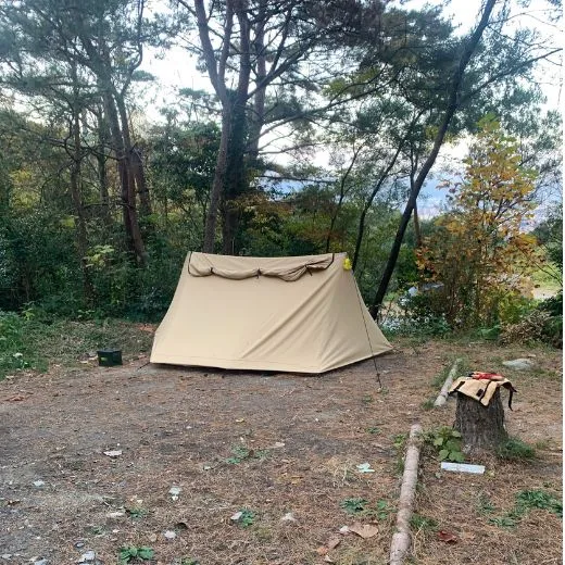 今回筆者はソロティピー1tc。先日久しぶりに使ってみてやっぱり良い幕だと思い今回も使用。11月末で気温も低かったので石油ストーブをインストールしました。