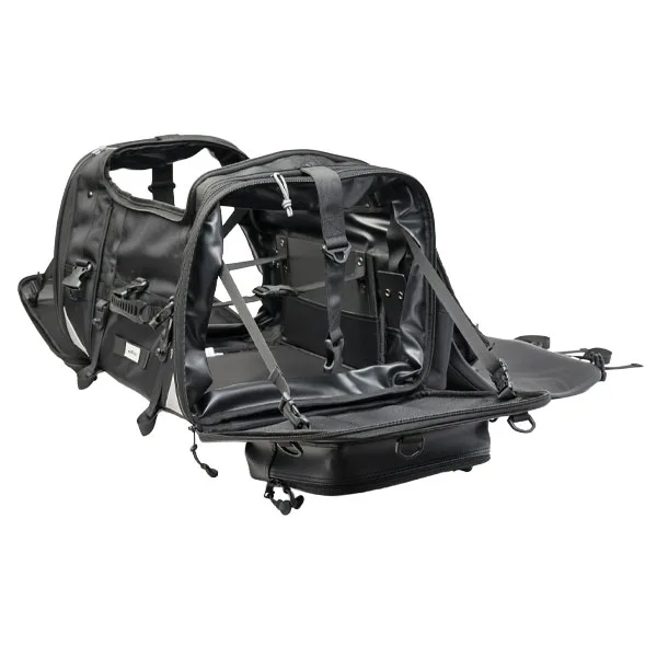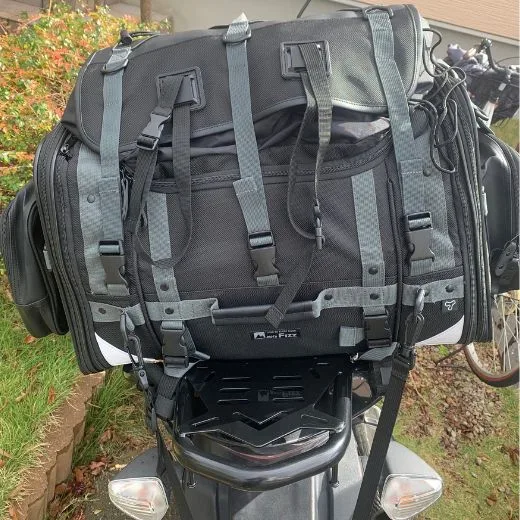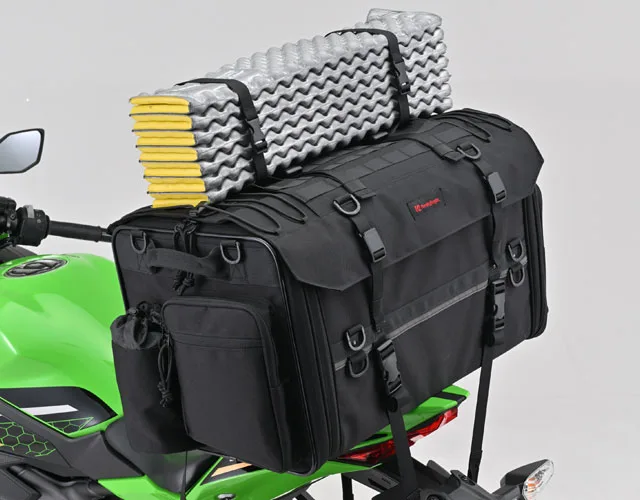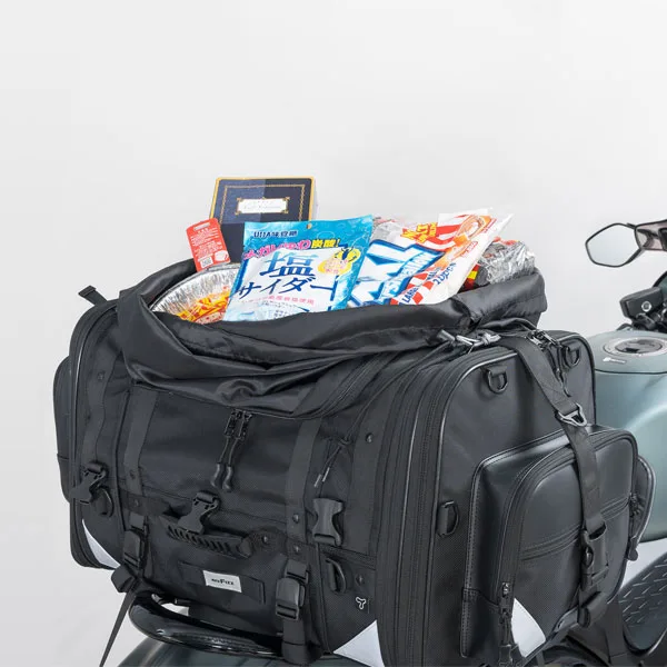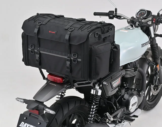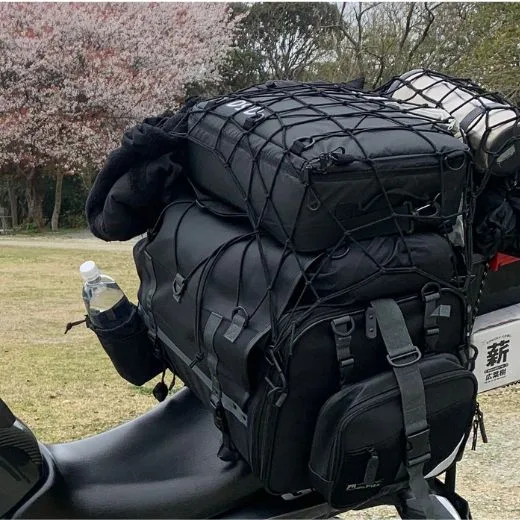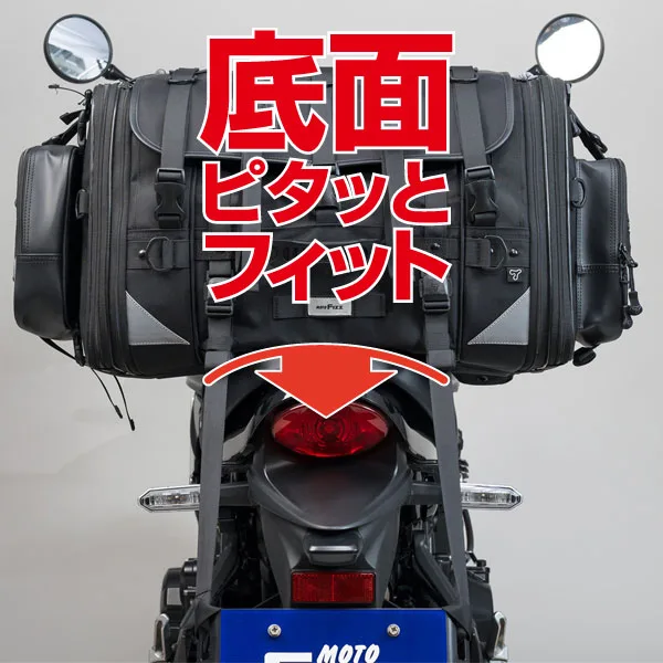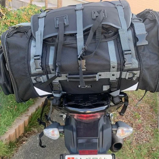 対してタナックスは、上部に便利な巾着機能がある反面、天面が柔らかく盛り上がりやすいため、「バッグの上にさらに平らな荷物を載せて安定させる」のは少し苦手。積載スタイルによって評価が分かれるポイントです。